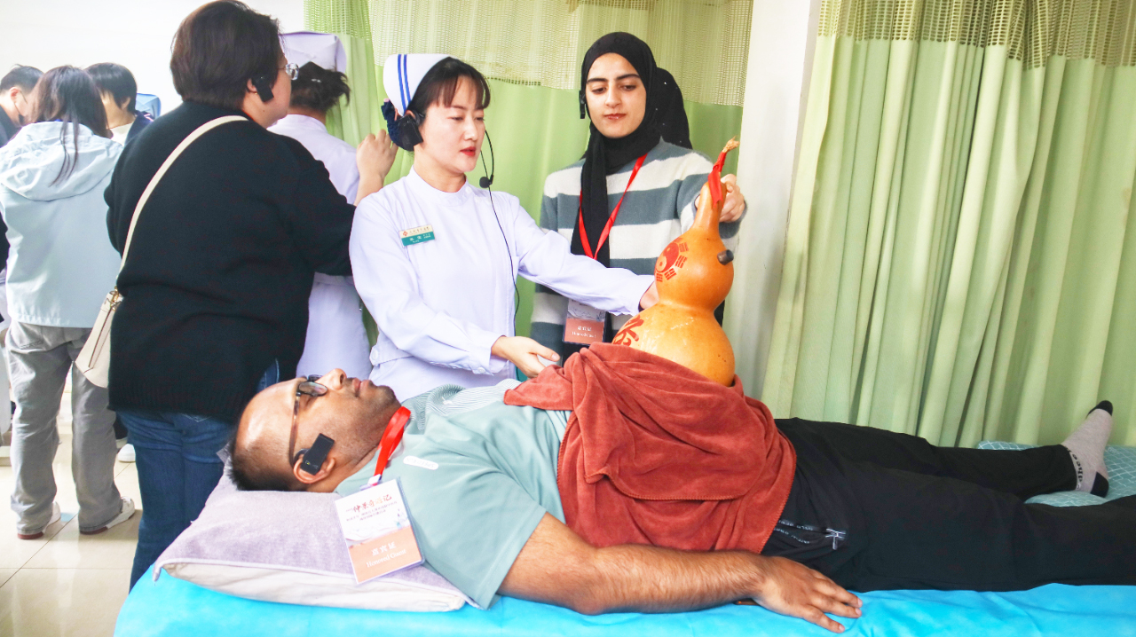 11月13日,以探寻中医药文化为主题的2025“仲景奇遇记——外国青年、网络达人探访南阳中医药”网络国际传播活动在河南省南阳市启动。参加活动的中外嘉宾前往河南省南阳市中医院体验中医适宜技术,感受中医药的博大精深。