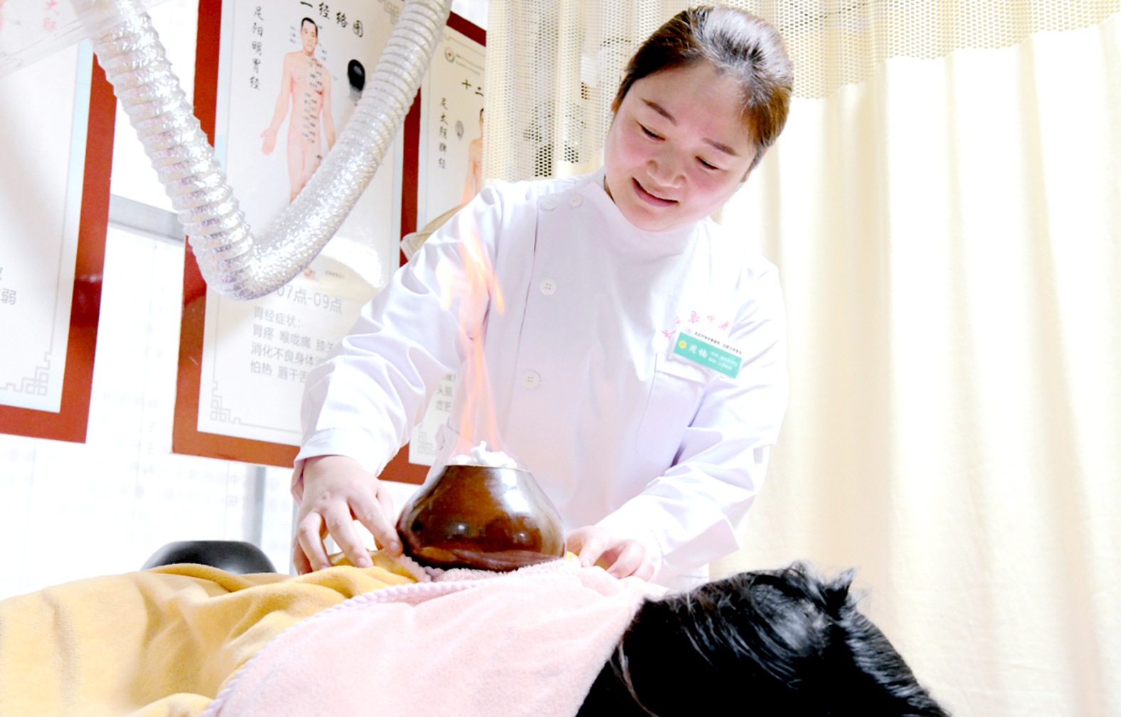 安徽省太和县中医院医护人员为患者进行火龙罐综合灸治疗